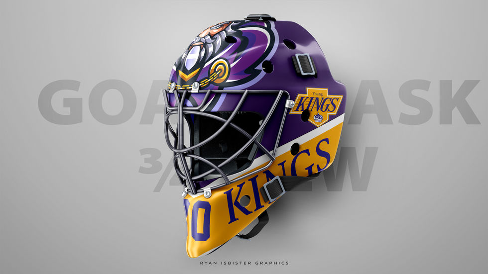 Introducing Ryan Isbister's latest project in goalie helmet design! This King-themed helmet was custom-designed for a young goalie playing with the Prince Edward Young Kingston team in Ontario, Canada.